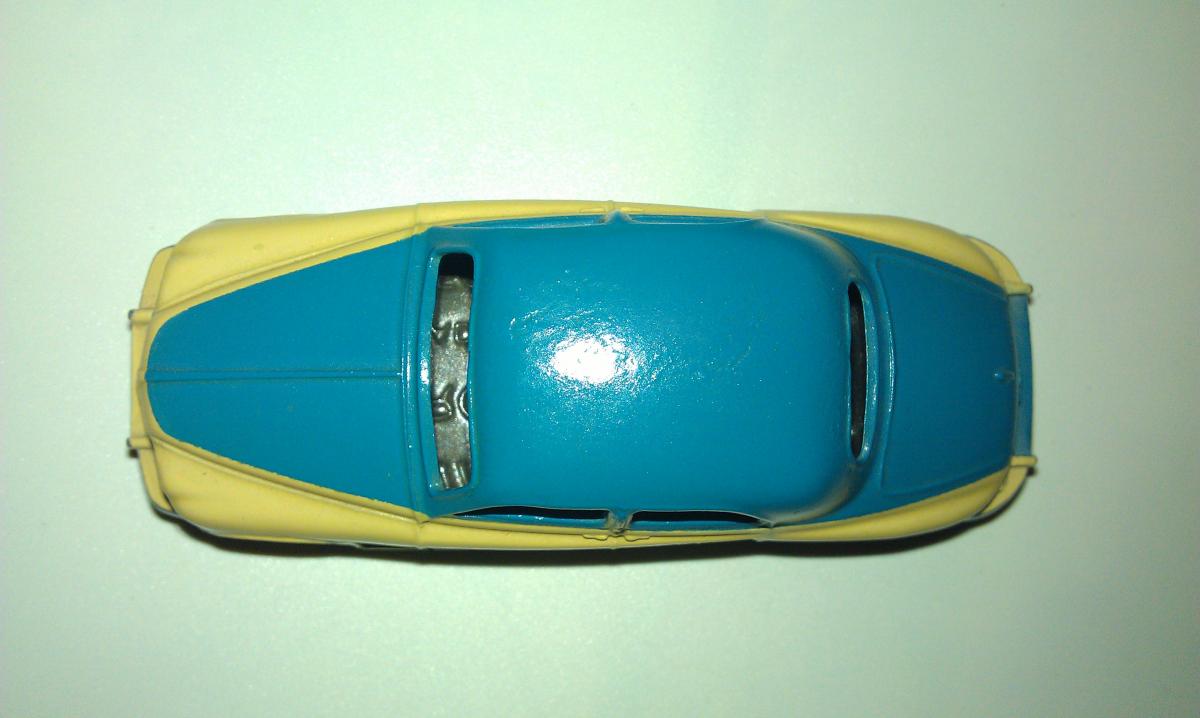 Jan. I have examined everything that could not be original to the car and I think that it is only the rivets that are different and apparently not original. I think the paintwork is exactly the same as its counterparts. In small parts there can always be some differences in the paint job. Sometimes very clear, sometimes less clearly painted. It is people's work. I show the overall appearance as well as possible by adding some more photos. The photos are very close up and that is different from the fact than when you actually have the model in your hands. The model really looks like new, but it does have traces of use. Has some very minor paint damage and there is some dust on the top of the bumpers. That makes it authentic. The base plate is original. The paintwork looks like original and not as repainted. The only point I mentioned is that there are rivets mounted on it that are obviously not original and I cannot explain that. I cannot understand why anybody ever should change the rivets because I see no further traces of the car which is not original. According Ramsay can this two-tone model (1956-59) be with No. 156 on base and some without. Mine is without number on base and according Ramsay can be excist.