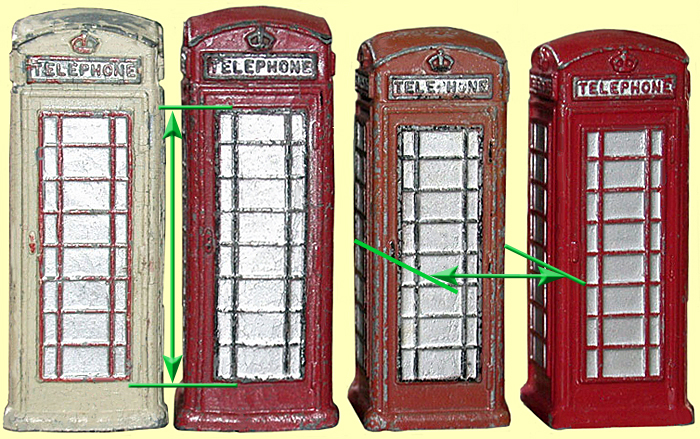 Regarding the telephone box, I had always assumed that the tooling was the same for both prewar and postwar versions, with the size differences that we encounter being due to zinc pest, but now I am wavering on that conclusion.