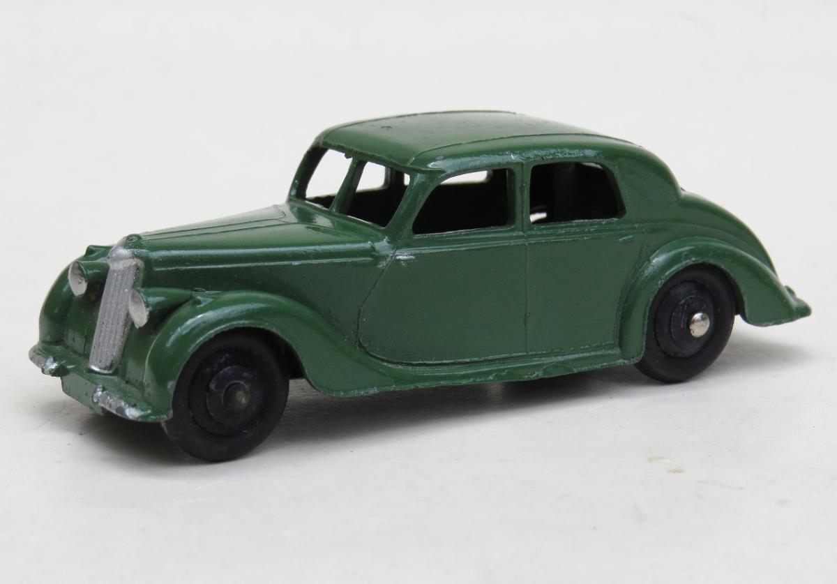 40a Riley Saloon in dark green with black ridged hubs, very similar to one my brother once owned in the early 1950s,