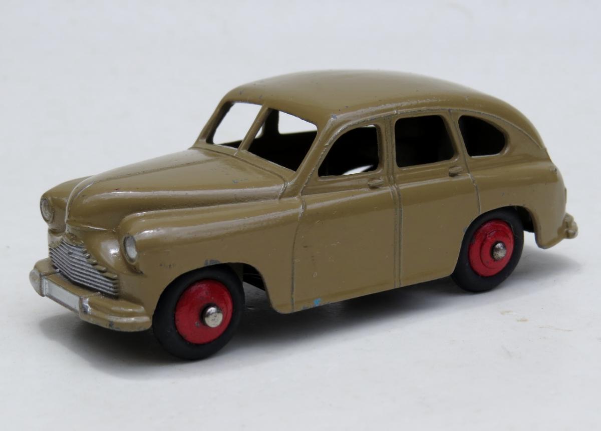 40e Standard Vanguard, 1st casting with open rear wheel arches, with the rear axle secured by a tinplate clip, fawn body with extremely uncommon red ridged hubs, to go with my similar model with the regular fawn hubs,