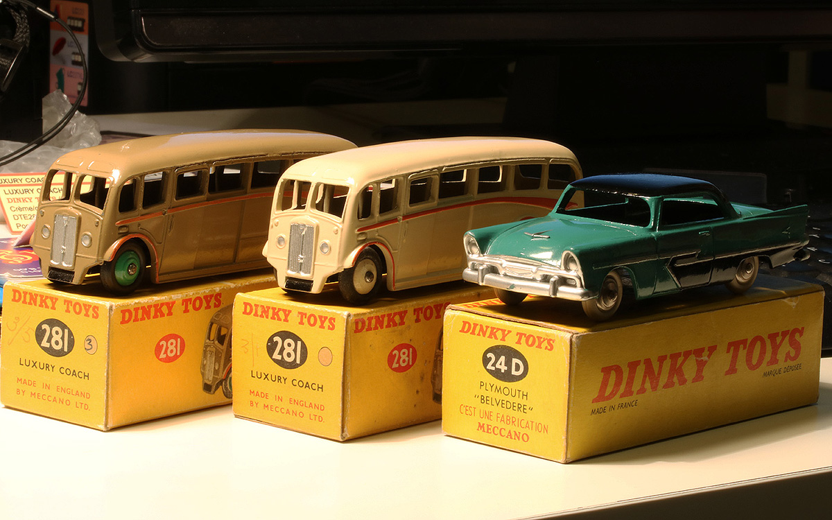 After a wonderful DTCA weekend I returned home with two only-dreamt-of acquisitions, a great 34a Airmail Van - 'excellent for its age' as we call it, and a virtually mint blue 281 Luxury Coach, without its box. Both relative bargains that we had not imagined only a decade ago.