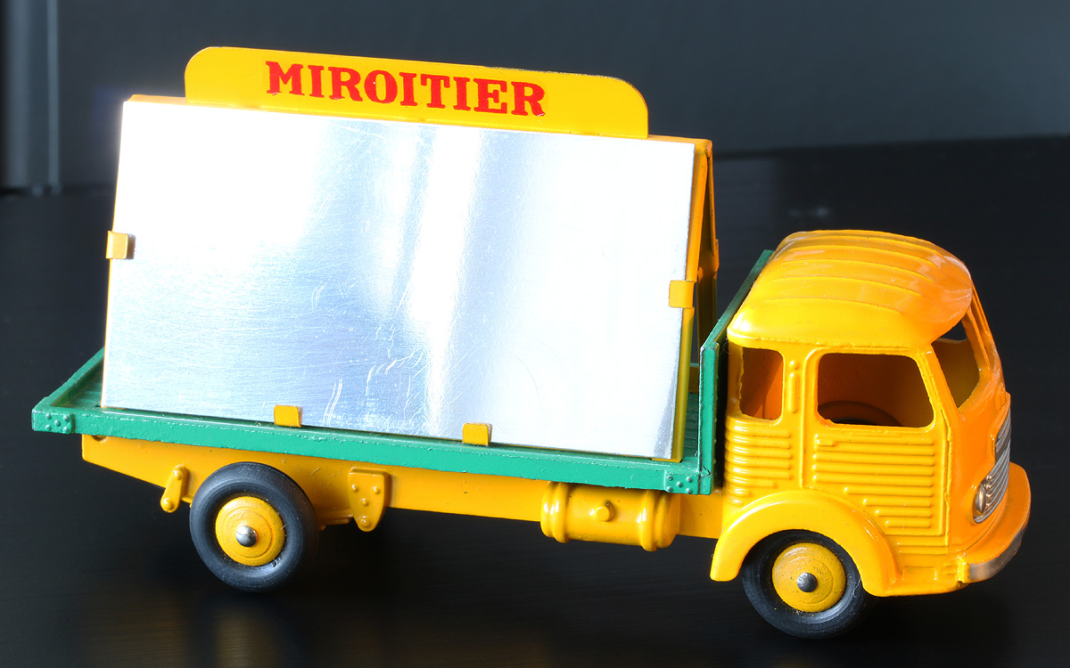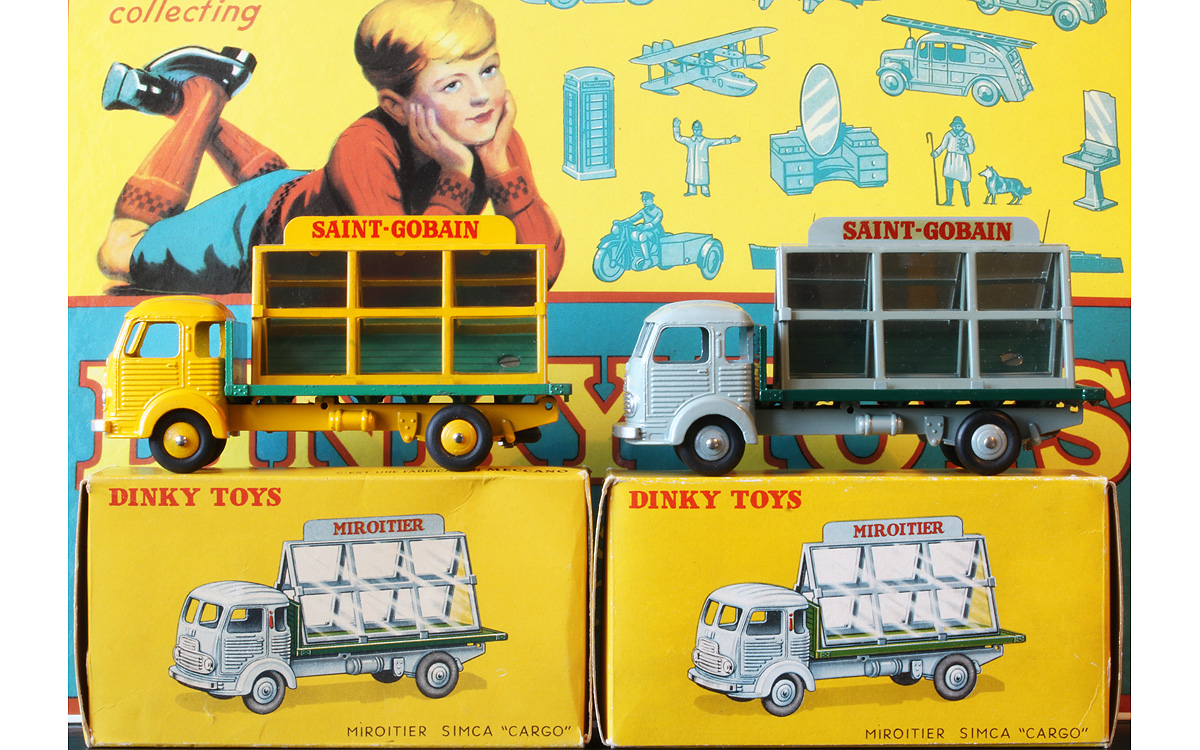 A new addition to my collection is the yellow version of the no. 33C/579 Simca Cargo miroitier Saint-Gobain. A wonderful example of this slightly less common colour finish, a companion to his already present grey brother. The green of the loading platform is brighter than the darker green of the grey one.