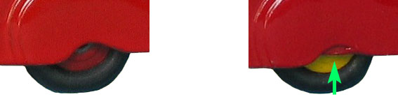 There may be a variation on the Shell / BP Austin van but this is not confirmed. All of them had a non domed rear axle which could slip away. A tiny bit of zamac has been added for the Nestlè and Raleigh vans and may be also for the late Shell / BP. See picture above.