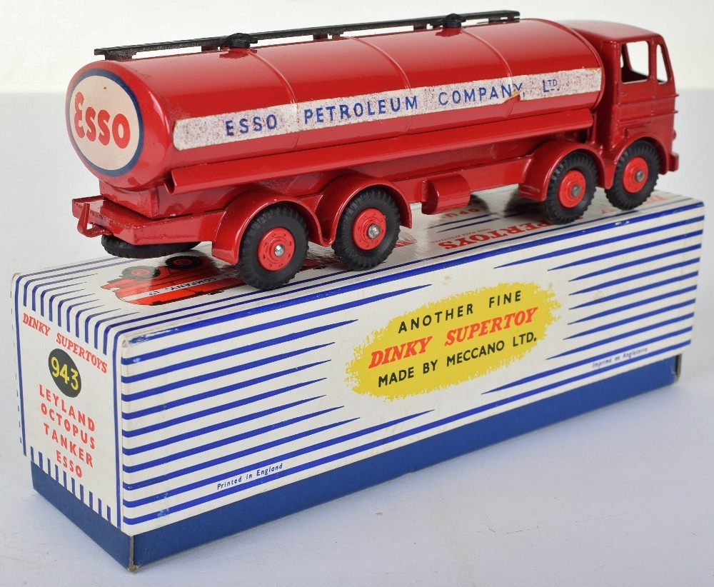 1) 943 Leyland Octopus Tanker "ESSO" - the final version with plastic hubs and paper side transfers. I would like to say the model is totally mint, except unfortunately, it has four minute chips, three on the tank and one on the edge of a rear mudguard - but one has to look very closely to see them, fortunately. The box displays very little damage, and it still has the small cardboard retainer to stop the model rubbing on the box lid.