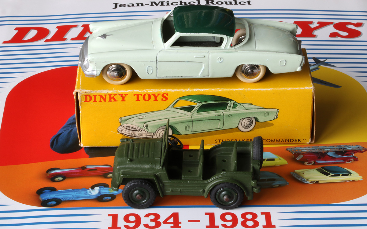 I found an excellent French 24y Studebaker Commander. The day before a late near mint unboxed Austin Champ had arrived from France, a bargain for 28 euros, whereas this one - without driver, dark green plastic wheels, plastic steering wheel and army formation signs fore and aft as stickers - seems to be much scarcer than the regular one with driver and cast hubs. Kind regards, Jan