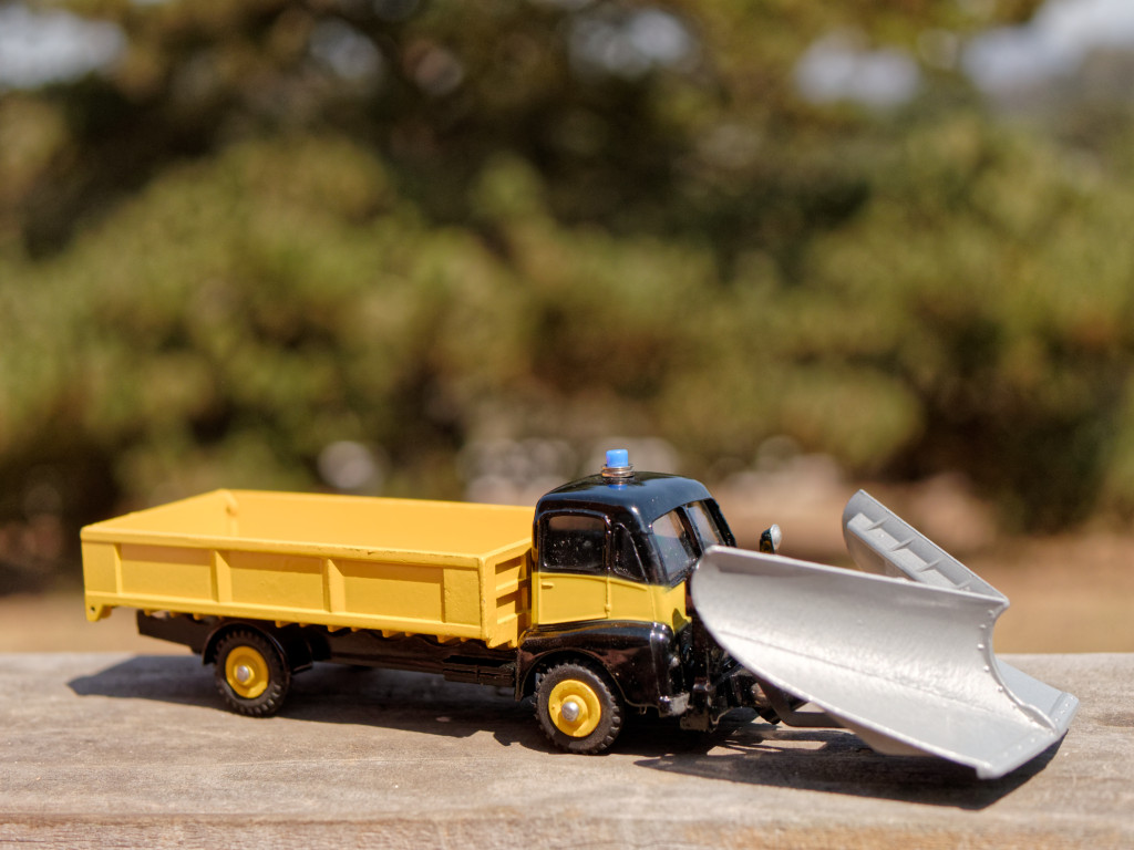 There is a non-Dinky Miata in one picture, which may be subject to eventual banishment -- but it is a model of a full-size car I own, right down to the proper color. Oh, and one can't tell from the photo, but the Snow Plough with the silver blade also has a lighter blue roof beacon than the other version, whose beacon is more of a dark purple.