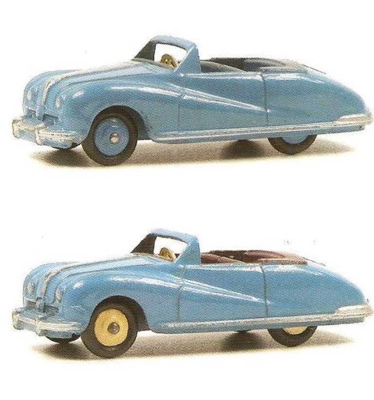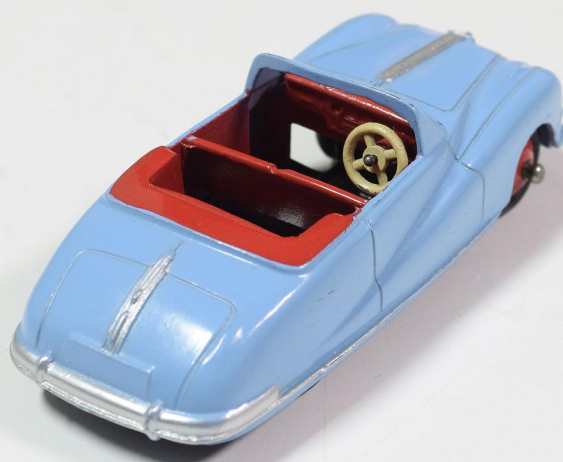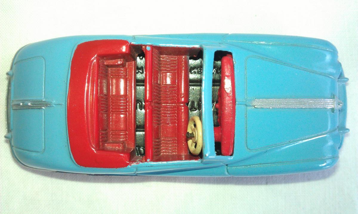 • A regular 1950s Dinky open car, but without the later so familiar driver (compare the regular sports cars of the 1950’s, the Cadillac, the Packard). Of course the American market oriented MG Midget Sports, no. 129 was also without a driver.