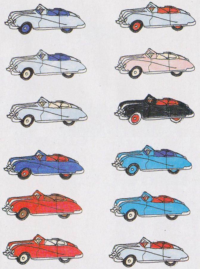 Dinky Toys 140a Austin Atlantic rare colour variations in book Collection Gérard Dulin with variation 8, 9 and 10 of the colour scheme.