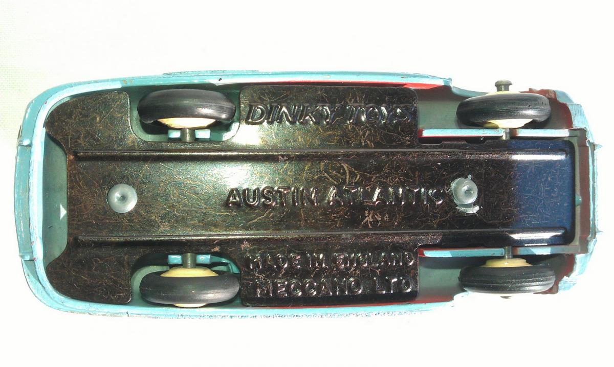 My Dinky Toys Austin Atlantic - light blue - gloss red interior - red ridged hubs - black mottled baseplate without model number - short front axle support.
