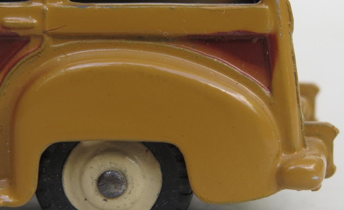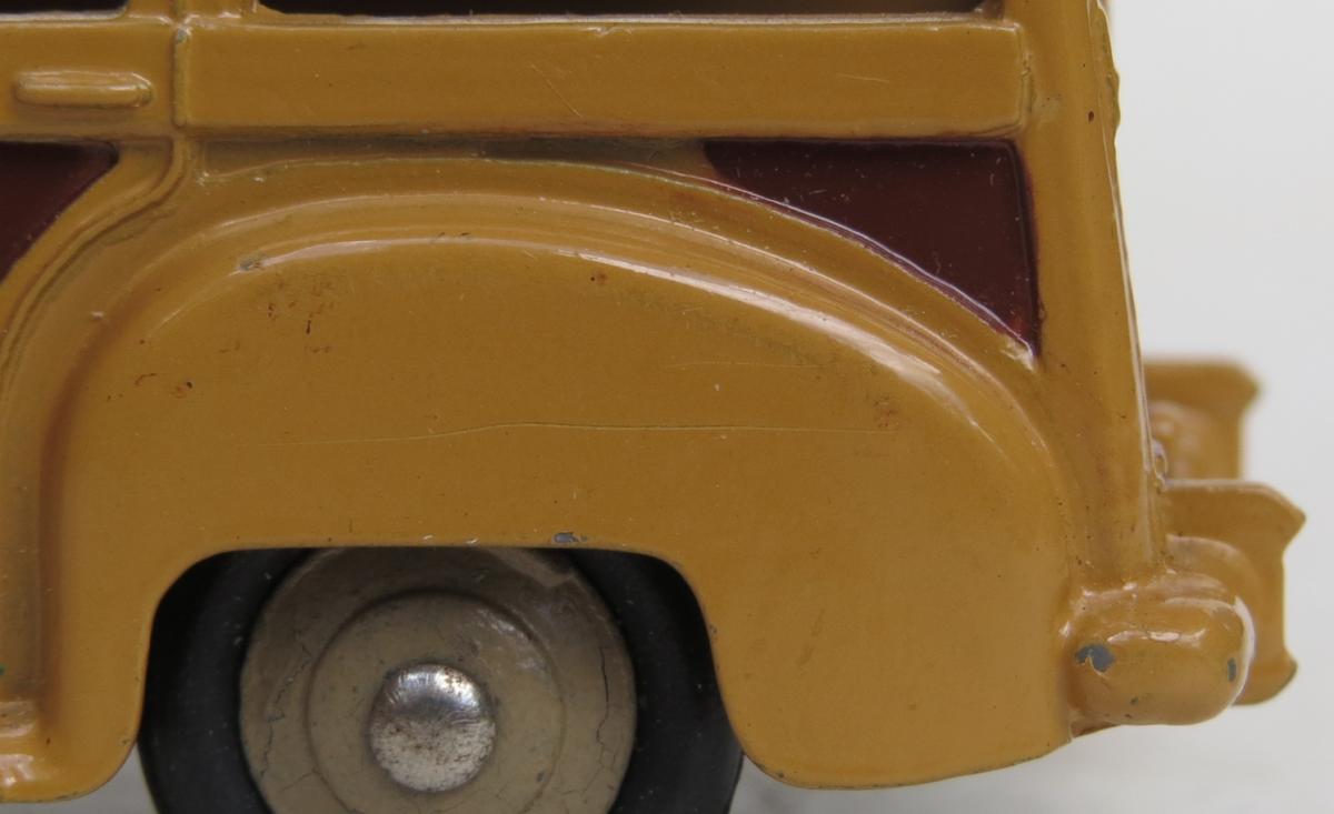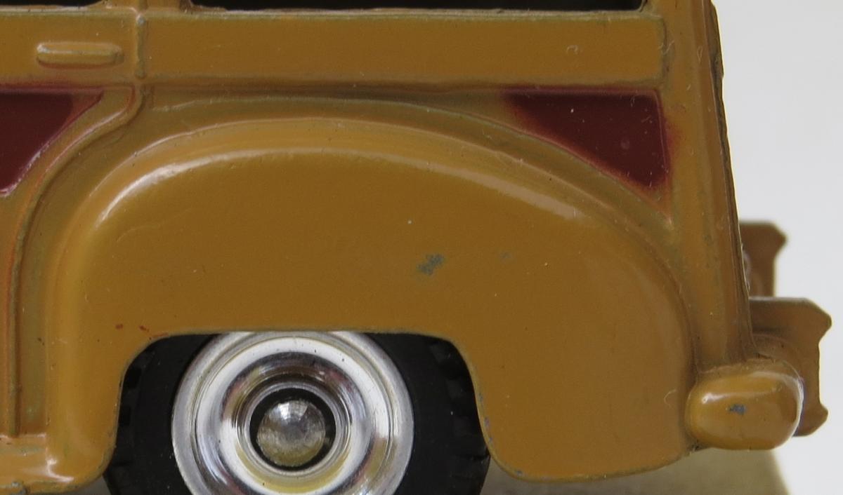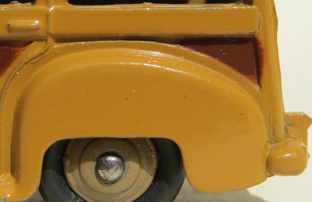 Bruce—-Another superb, very well written article on a very popular Dinky model. When I was a young boy, I was immediately attracted to it, as it was a unique look....no other Dinky had that “woodie” look to it. Alas, I only have one example, and that is one I got probably over 60 years ago. It is a 344 numbered version, with cream wheels, and smooth black tires, and still in very good condition. I had never bothered to closely look at that interior roof area, to see all of those structural supports that were added. I now wonder If they did that much with other models?