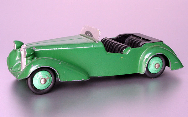 To me, this and the companion 39 series were two of the most important series that Dinky ever made, being right at the nexus of changing from the earlier pre-war, somewhat antiquated designs and casting techniques, and moving forward with new models that were actually designed from real prototypes in the British market. It is interesting that Dinky chose to make all of these as roadsters or convertibles, and the 39 series were all coupes or sedans.