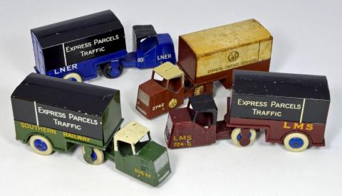 I had posted some pictures of these a few years ago, but with several new forum members, thought it might be nice to show these little trucks again. These were introduced in 1935 and discontinued in 1940, and were apparently never sold or packaged as a set....which would have seemed natural to do. These four liveries represented the British Railroad lines in the 1930's, and I think make for some pretty neat little models. These are very prone to being infected with metal fatigue, so it is difficult to find them in really nice condition. The front windscreen pillars seem especially vulnerable. Like a lot of the other pre-war Dinky's, these seem to capture the charm of a bygone era.