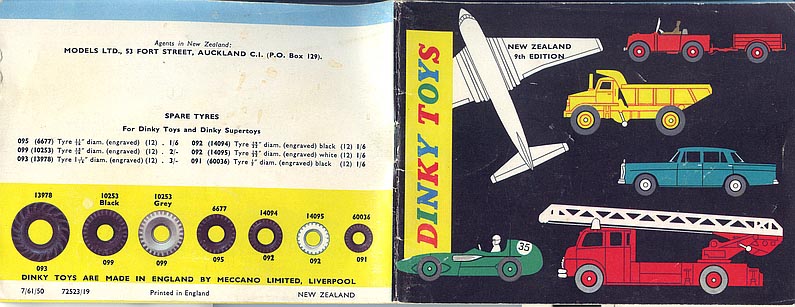 Here is the front page of the catalogue.  I have several copies of it and this one has the NZ dealer stamp.  Whitcombe and Tombs were a nation wide chain of bookshops and also sold toys.  I bought may of my Dinky Toys from the two local shops when I was young.  Note this is a general Meccano catalogue and all other products of theirs could be bought in New Zealand except for Dinky Toys!  I will check through the rest of my catalogues to see when the exclusion finished.