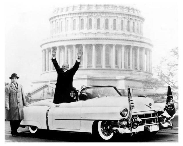 President Eisenhower in Cadillac Eldorado No.2 during his Inauguration in Washington. The car was on loan from the Cadillac Division of General Motors and was the second Eldorado built.