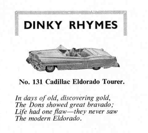 While scrolling through some old Meccano Magazines, I came across the following poem on the 131 Cadillac Eldorado, so thought I would share it with you as another piece of the story of this model.