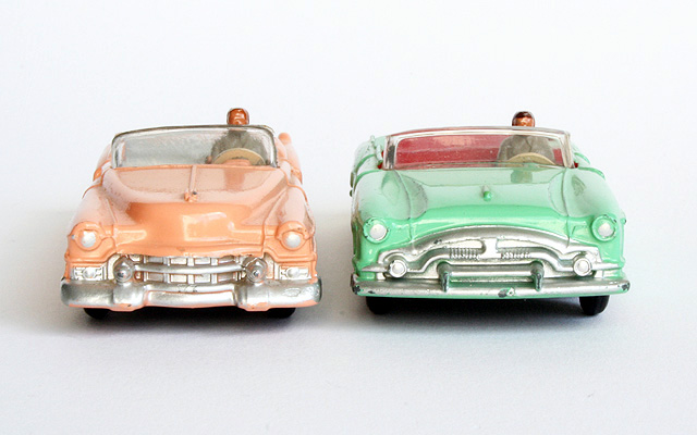 Packard and Cadillac by Dinky as seen from above, comparing widths.