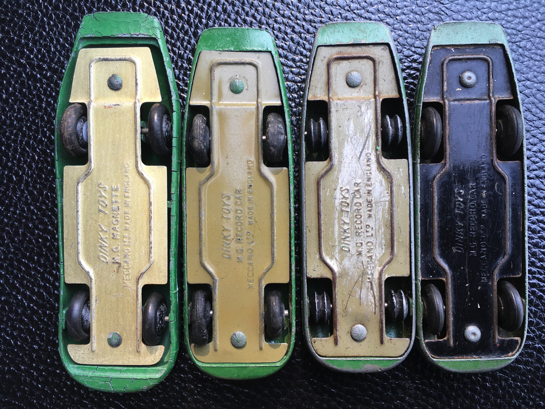 2. It is a very late pre-war issue with a "rectified" base-plate, carrying the correct name M.G. RECORD CAR. After the war, the color of the rectified base-plates was then changed to black for all the post-war issues.
