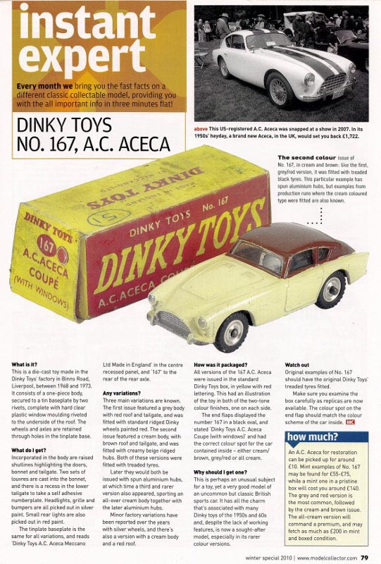 I have checked my index of Dinky articles in Model Collector for a reference to the 167 AC but can't see it listed - I will check more carefully and add a scan of the relevant page if possible.