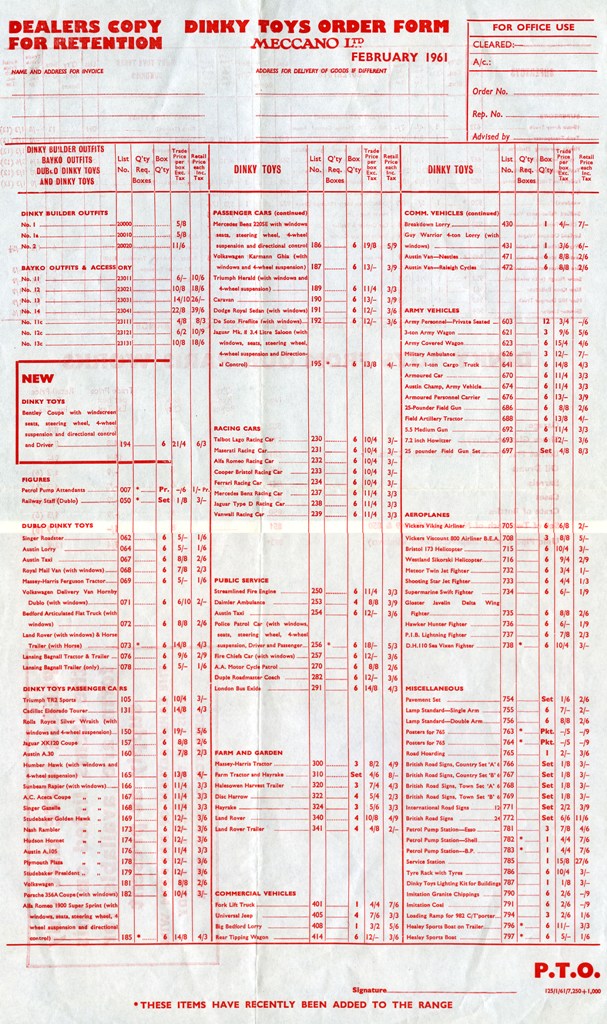 Publication Year: 1961Publication Type: MiscellaneousCountry: England1961 February Dinky Toys Order Form