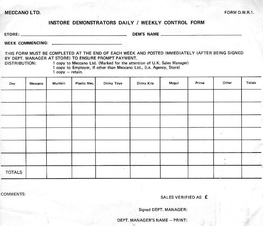 Publication Year: 1960Publication Type: MiscellaneousCountry: EnglandInstore Demonstrators Control Form Form is below.