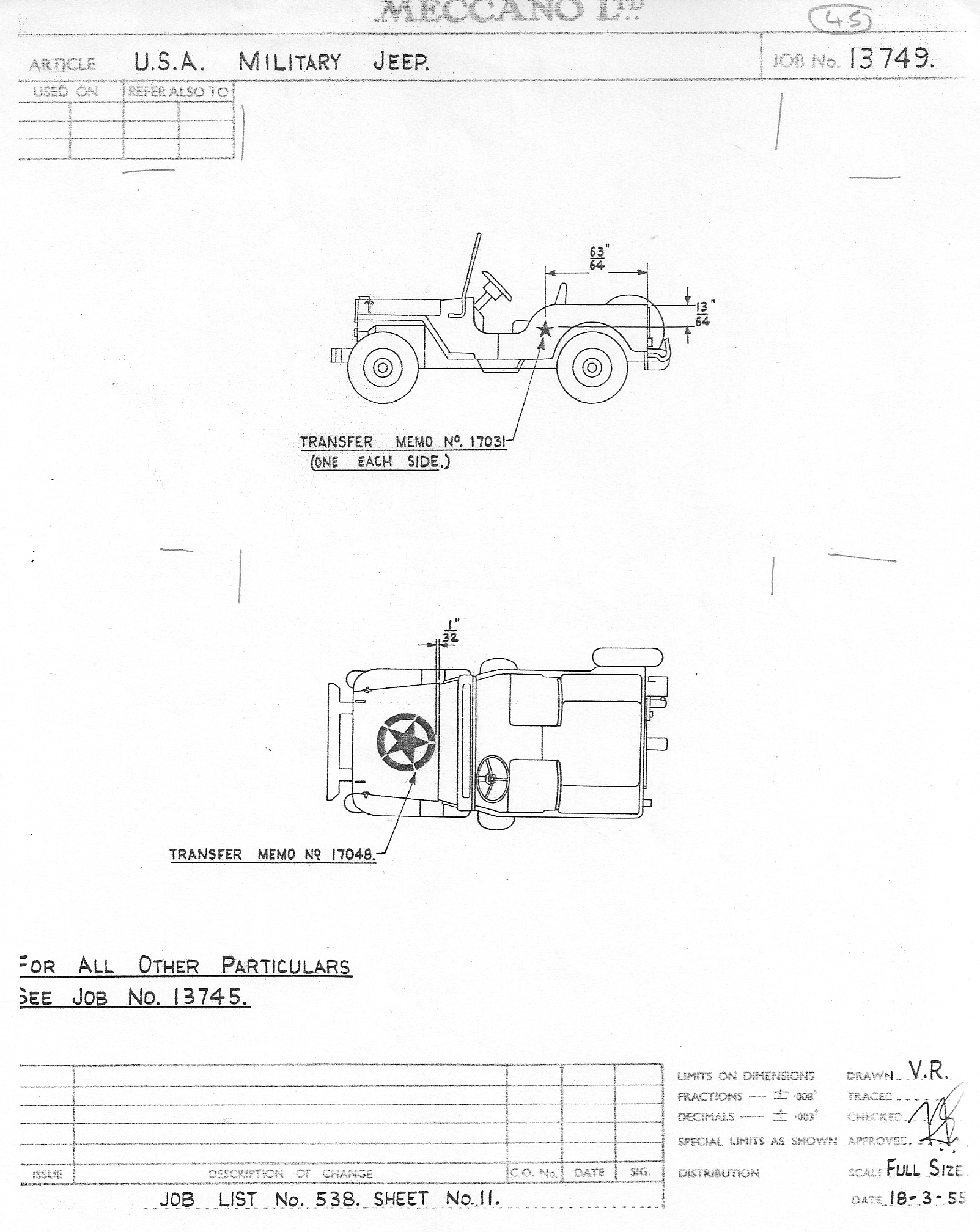 Publication Year: 1955Publication Type: Factory DrawingsCountry: EnglandThis is the factory drawing for the 669 USA Military Jeep (US Army Jeep), produced from 1955 to 1957. This image has been donated to the DTCA by Mike Richardson.