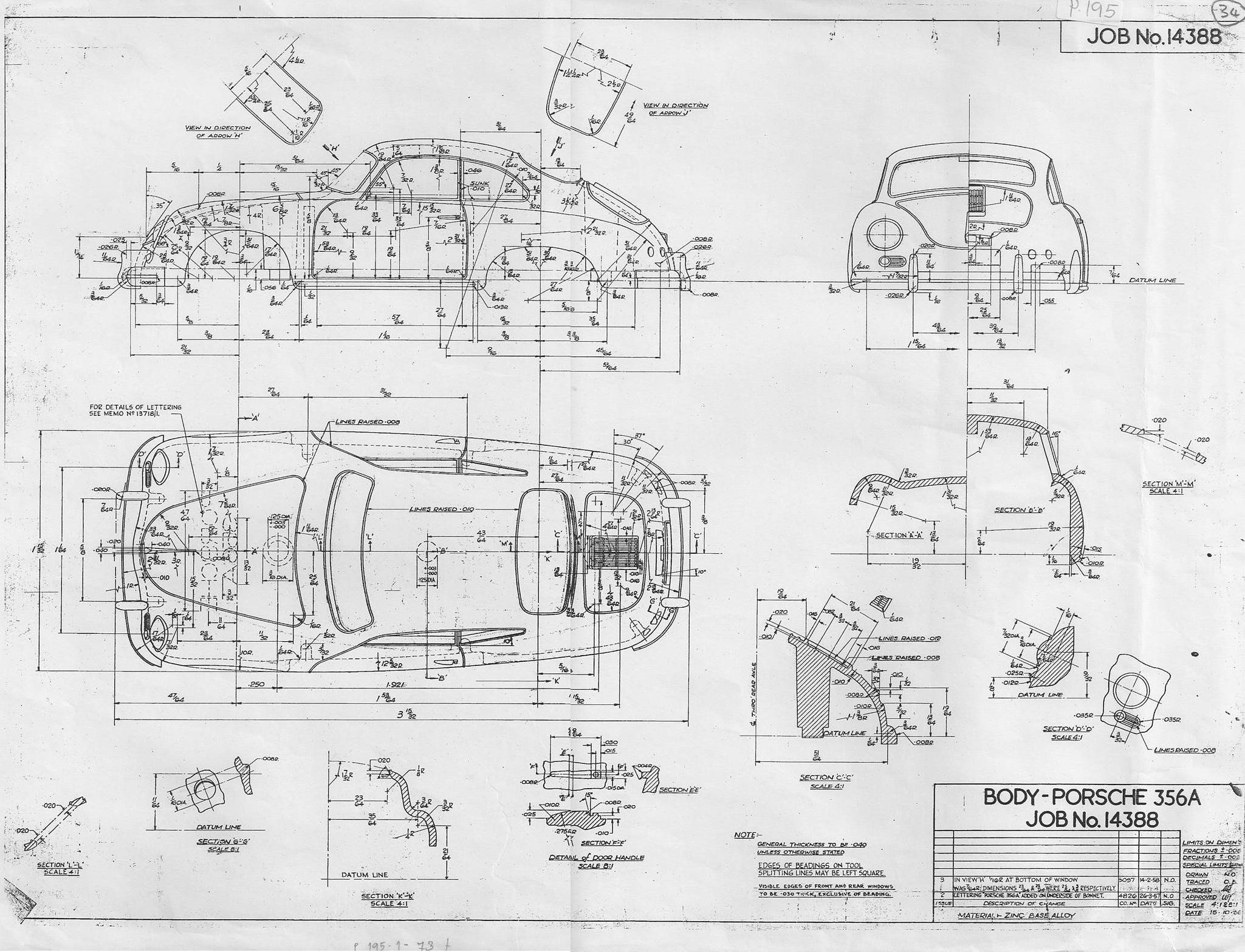 Publication Year: 1958Publication Type: Factory DrawingsCountry: EnglandThis is the factory drawing for the 182 Porsche 356A, produced from 1958 to 1964. This image has been donated to the DTCA by Mike Richardson.