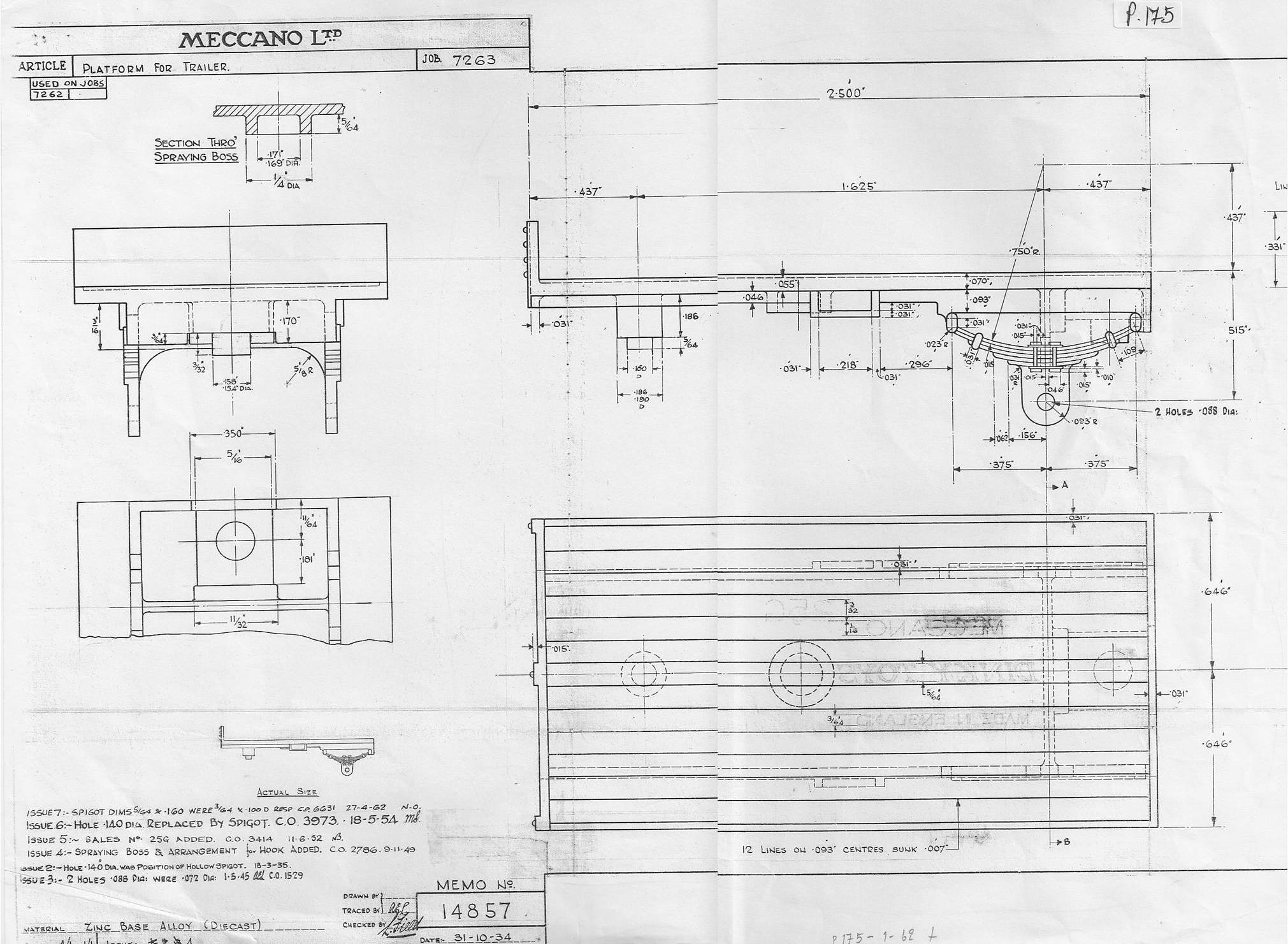 Publication Year: 1935Publication Type: Factory DrawingsCountry: EnglandThis is the factory drawing for the 25g/429 Trailer platform, produced from 1935 to 1941 and reissued from 1946 to 1963. This image has been donated to the DTCA by Mike Richardson.