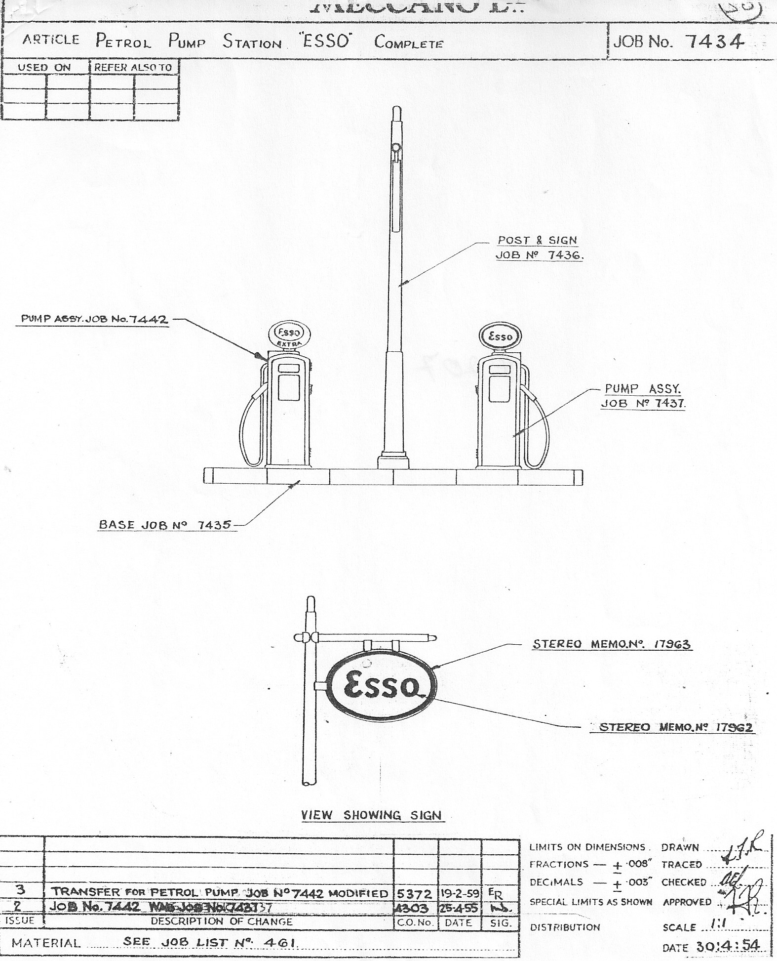 Publication Year: 1955Publication Type: Factory DrawingsCountry: EnglandThis is the factory drawing for the 781 Petrol Pump Station Esso complete, produced from 1955 to 1964. This image has been donated to the DTCA by Mike Richardson.