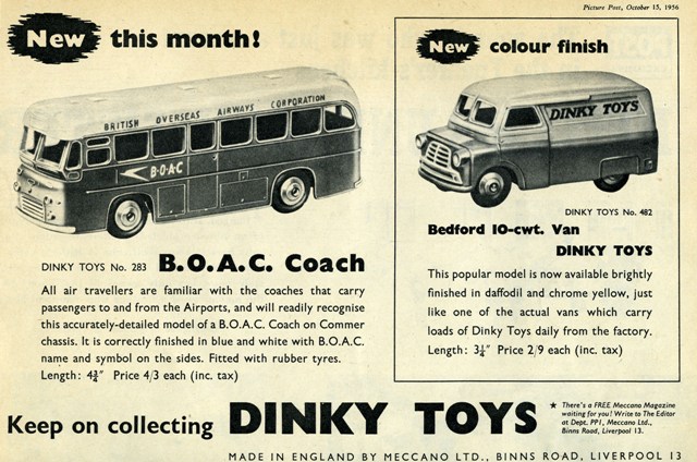 Publication Year: 1956Publication Type: AdvertisingCountry: EnglandAn advert for Dinky Toys in the Picture Post October 1956