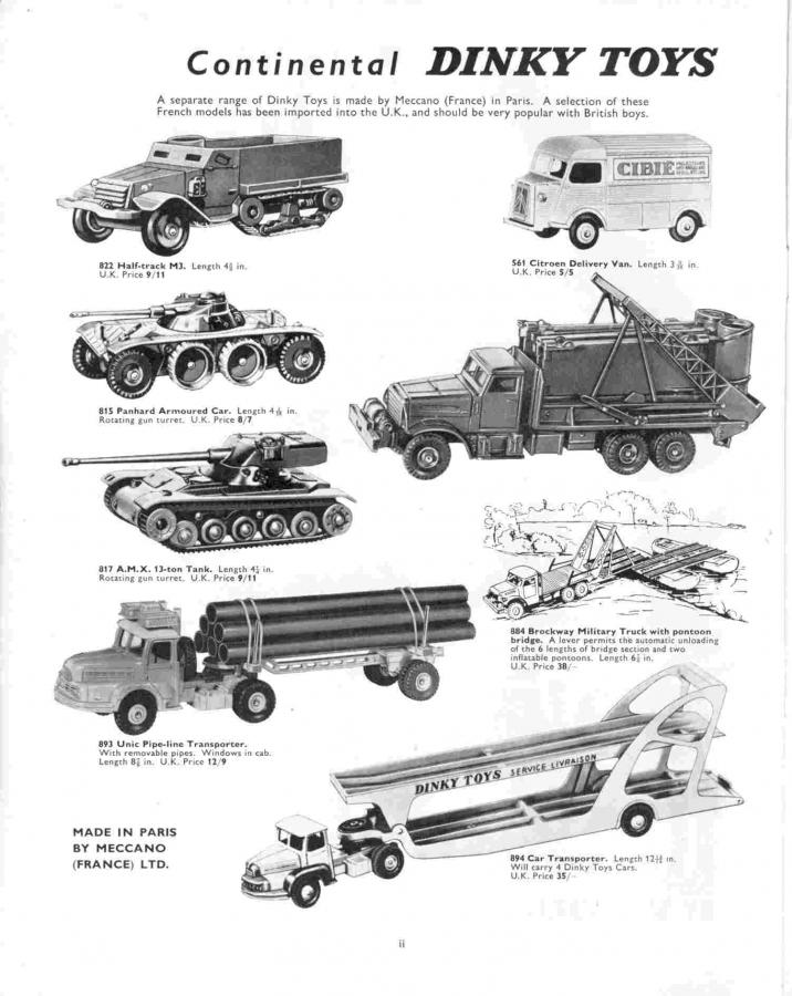 July 1962: Part 1 announcement total range of French Dinky Toys imported to UK in MM UK with the statement “and should be very popular with British boys”.