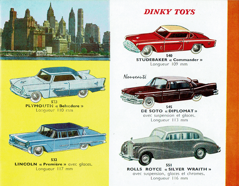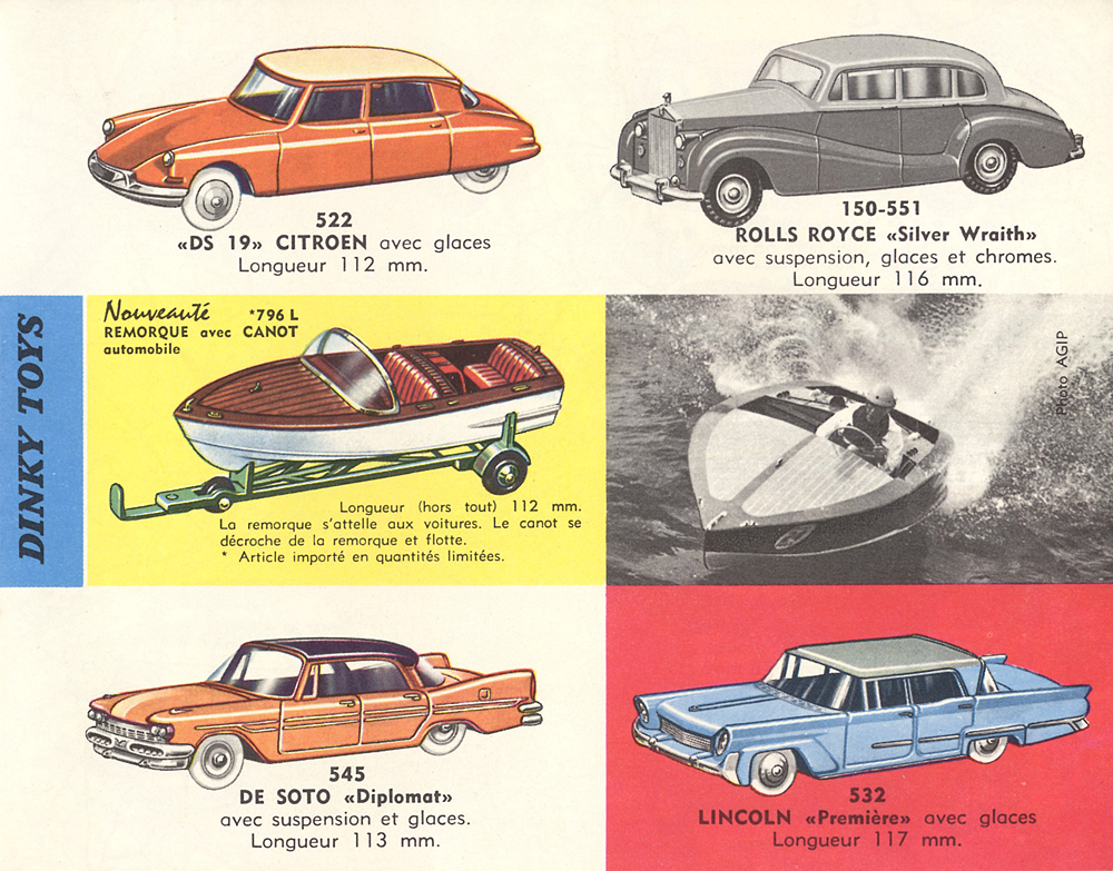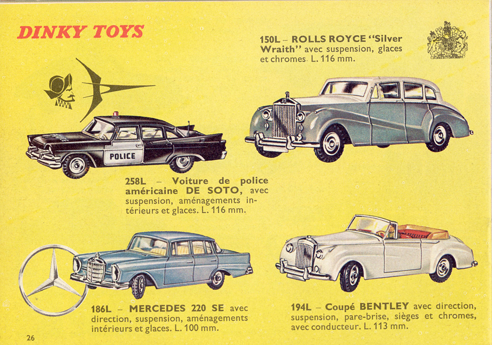 So, finally the Rolls Royce in the French catalogues was not a French assembly anymore, but just an English import, like so many others in that period. The other way round, many French made products were also sold on the British and other markets, both pre- (1938-1940) and post-war, (especially early and mid-sixties), and sometimes even assembled in Liverpool, like the (somewhat adapted) British version of the Caravelle (60f/891>997). Important other exceptions were of course the French Dinkies which were assembled in South-Africa in the first half of the 1960s.