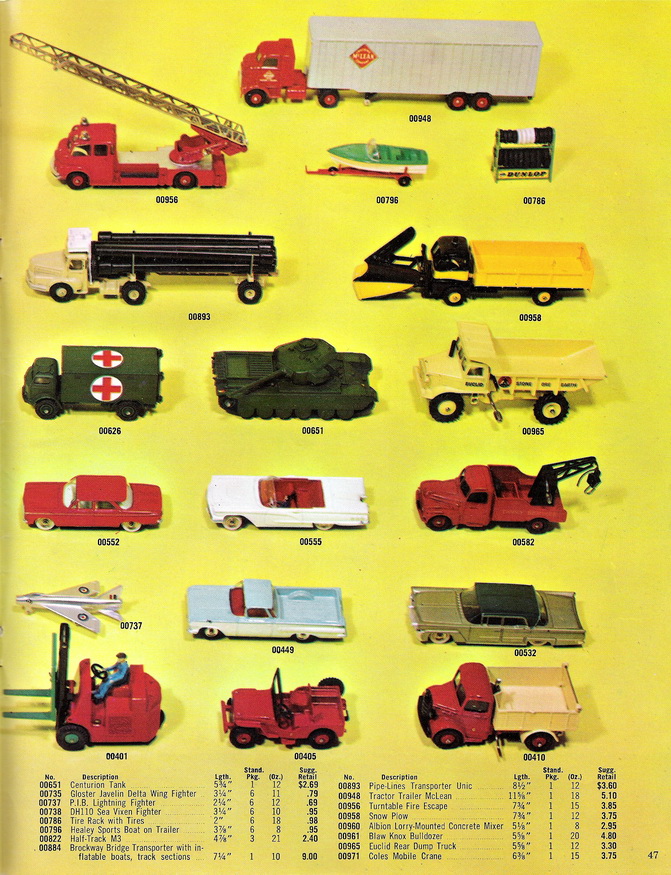 In the USA were a separate leaflet issued with the BIG 6 pictured in colour. Each model costed $ 1,69, except the Corvair which costed $ 1,49, later on each model for the same price of $ 1,98.