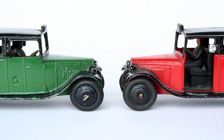 Two post-1946 versions of the no. 36g Taxi. Treaded and smooth. Both occur with smooth and treaded white tyres too, post- war.