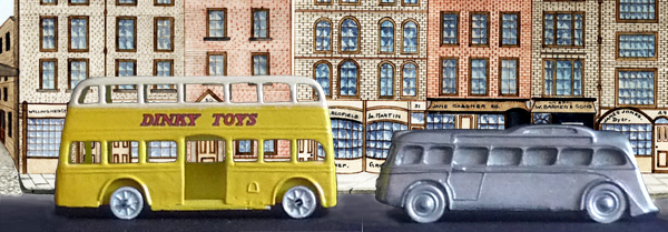 I prefer the single deck coach! Being especially interested in those intriguing models that Dinky never made I would love to see THAT one reproduced. Unfortunately I missed it in 1983. And of course it could be done better for a second time, not in massive pewter but in white metal, with the true specifications of the original design, see Dinky Toys & Modelled Miniatures fig. 428 page 255.