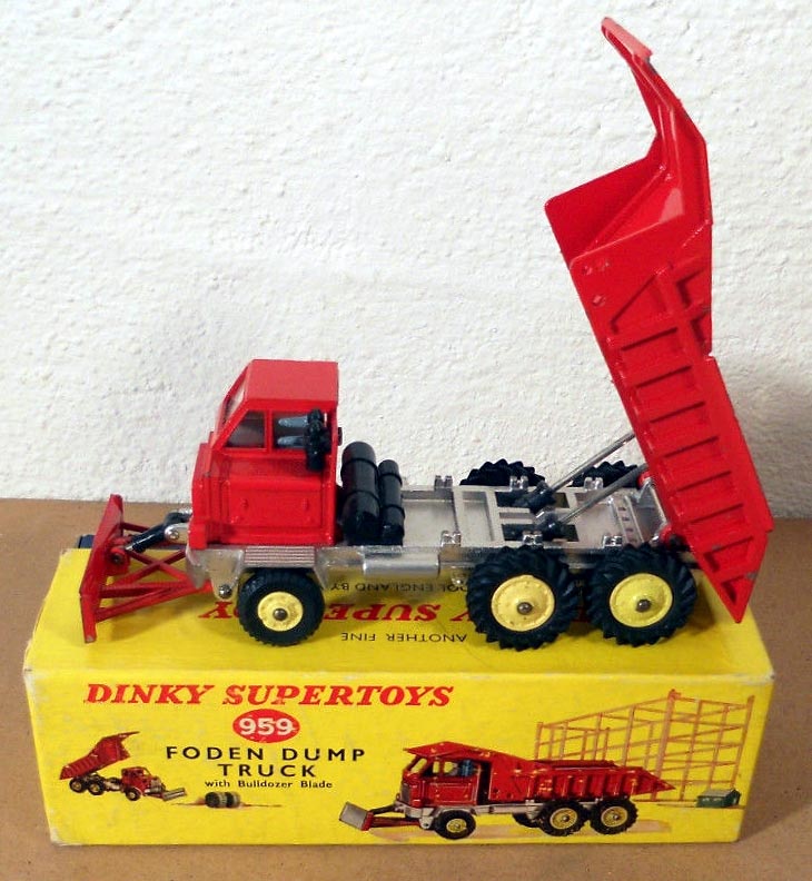 Together with the 965 with red hubs posted earlier, I am also waiting the arrival of my 959 Foden Dump Truck with Bulldozer Blade from the same seller in Germany. He also had the less common version with red hubs, and I was in a quandary as to what to do - bid on both, or be satisfied with just the 965 and 959 with yellow hubs? As the auctions ended in the wee hours of the morning, and my main interest was with the Terex, I put all my eggs in that basket through an online bidding site, and placed an "interest only" bid on the 959. I was quite surprised to see that I had won both the 965 and 959 with yellow hubs - and the red hub version went for just a little more than what I had paid for the 959! That is why I am singing praises about eBay! (Or at least until I have both models in my hands!)