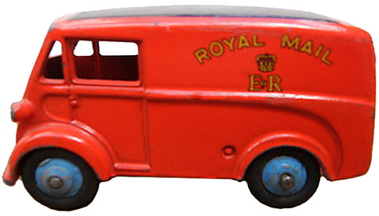 Although not very spectacular, there are even more differences to be found among the MTPV's issued. Of course tyres can be replaced, but the model can be proven to have been fitted with white or black smooth 15 cm tyres, the black ones treaded from 1957 on, and also the bigger smooth 17 mm tyres. Besides that there are three sizes of texts on the doors, transfers and stamps. Finally the shades and gloss of red can differ significantly.