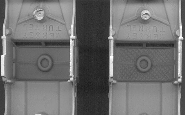 This is the 'cross hatching', or whatever you call it, of the Mersey Tunnel Police Van's inside roof. It improves the flow of the zamac, especially near the tiny window pillars.