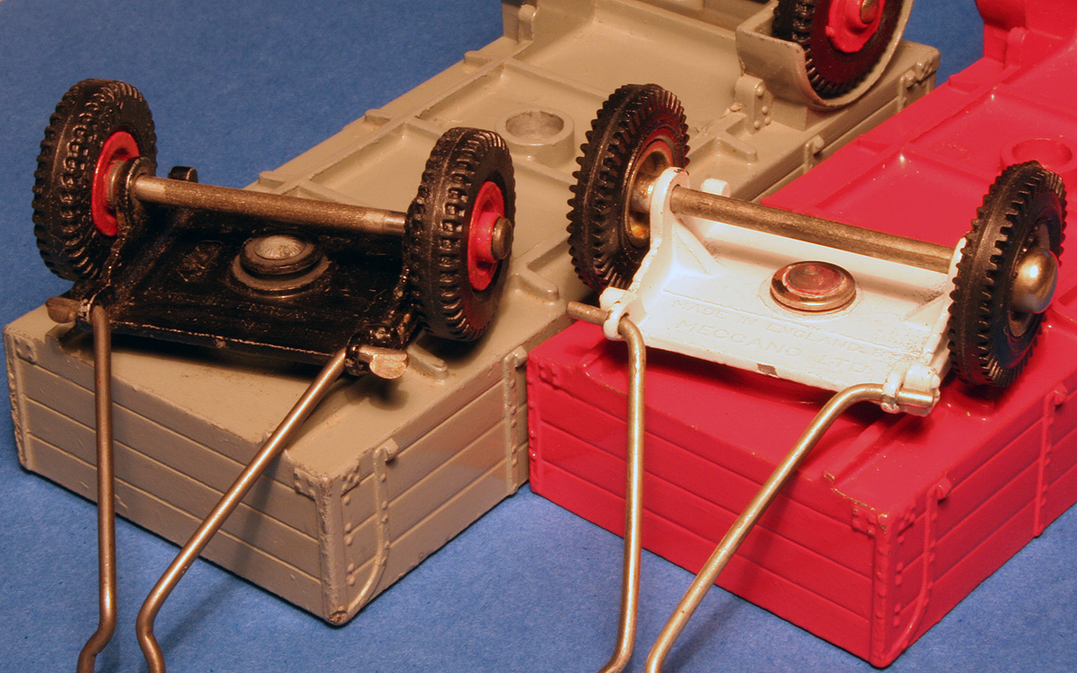 Hello, could anybody help me, please, with the dating of the HEAVY DUTY tyres, as shown below? They are fitted on one of my grey Large Trailers, and may be of help dating that example (assuming they have been on that example right from the start). They are different from the later plastic tyres, always seen fitted on the final red Large Trailer.  Kind regards, Jan