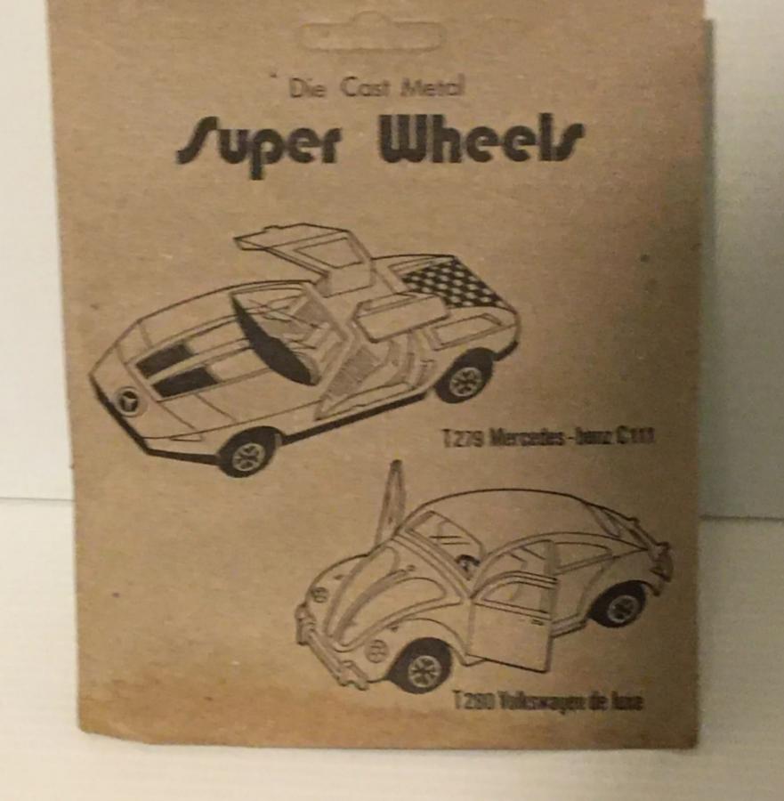 Regarding the rear of the blister this blurry photo taken by the eBay seller will have to suffice for today. As you can see, it advertises the Mercedes C-111. The C-111 is an obvious copy of the Corgi model, not the Dinky, but is equipped with Dinky-style wheels (as the two photos I have taken from eBay show).