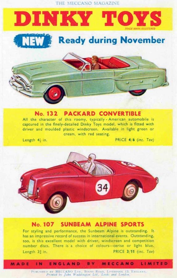 I have an example of the version in deep pink somewhere!  Actually, the description of the colour caused a little confusion when the model was announced in the Meccano magazine in November 1955. The back cover advertisement referred to the colour as cerise, whereas The Toyman on page 606 described the colour as red!