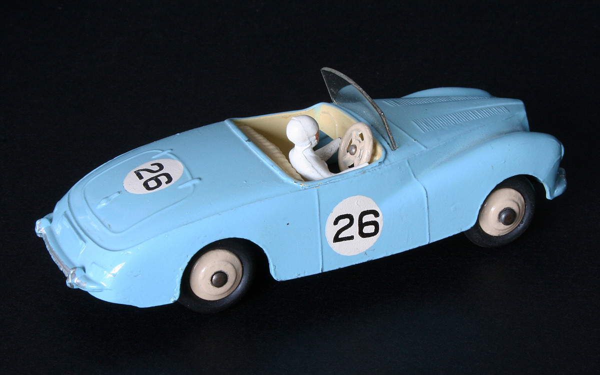 Jan-----I like both the "by night" presentation and the nice light blue color. I have the light maroon shade version, which is the same vintage as yours. By the way, saw a very late version of the Austin Healey Competition model listed, with treaded tires and the racing numeral by itself, with no white roundal behind it.