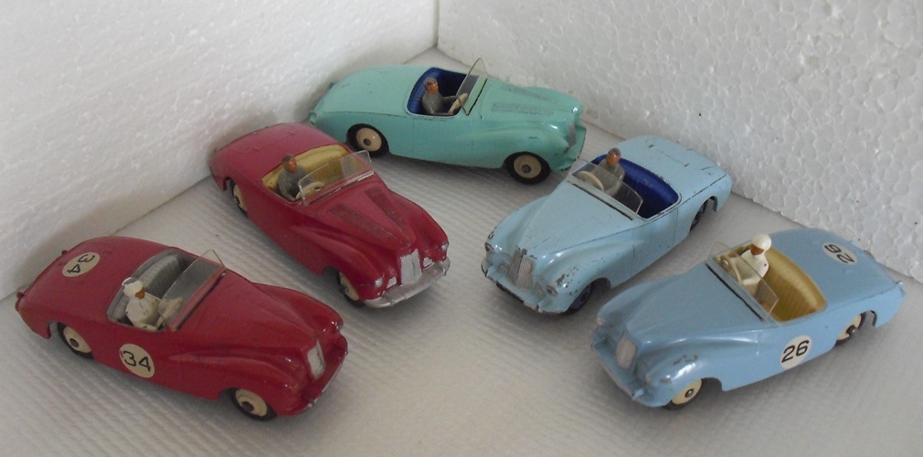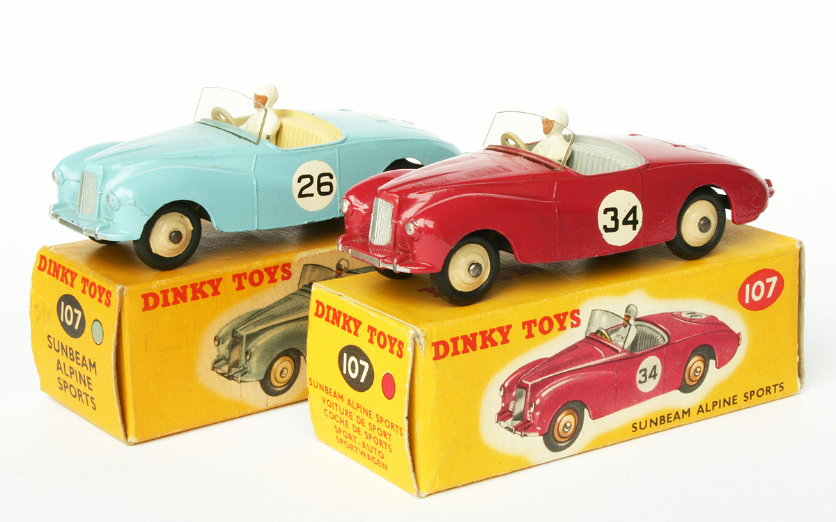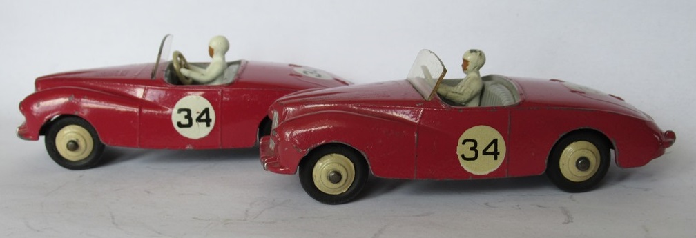 Jan---I agree.  I went back and just looked closely at my two Sunbeam Alpine's, to see how the silver coverage compares.  My competition version has no silver paint at all on the rear bumper...just the body paint color...not sure if that is typical or just missed on my model.  I couldn't tell if Jan's is painted or not.  But Bruce's rear bumper is totally painted, including on the top side, all the way to the start of the body.  Dinky normally did not paint bumpers like that, at least in that era.  In addition, the rear deck trunk or boot hinges and handle are also painted silver, and the headlights also look as it they have a larger surround painted silver than normal.  I think it was common for some hobbyists to enhance the silver painting, and to also increase the coverage over what the factory did.  I think it is likely that is what happened here.  In seeing many Dinky Toys restorations, I think trying to duplicate the original factory silver coverage is impossible, as it was sprayed, not brushed on, and a mask was used, so there is normally not a real sharp, or built up edge where the silver stops.  Of further interest, my touring version does have the rear bumper painted, in the normal fashion, and also has the tail lights painted red.