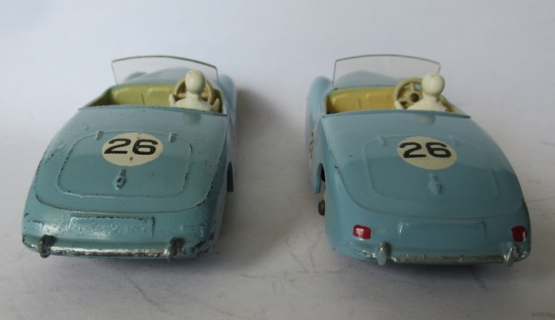 Always hard to see those subtile differences on photos, Richard, but no doubt your keen eye on these unveiled them. My blue example seems to have the fainter shade of yellow and my cerise example seems to have the fatter race number. The originality of the presence or not of rear lights (not with my examples) is always difficult to judge. With some models of mine I have doubts.