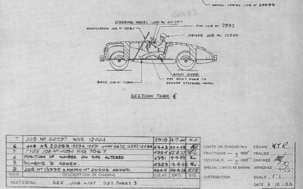 I also dug up from my files a picture of the assy of this model, which was auctioned in September 1995 by Christie's South Kensington. I cut it in two pieces in order to save the interesting details to be read. You can see confirmed the note in the GBofDT (page186) that in the course of designing this model the '26' was first (3 December 1953) whereas the second, '34' number, was added much later, 13 May 1955! And, please, note other interesting details. Kind regards, Jan