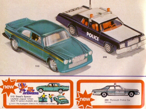 The catalogue shown above by Al is actually the 1977 issue. Steed's Jaguar is also shown  in the 1978 issue on Page 13 and has now turned Blue.