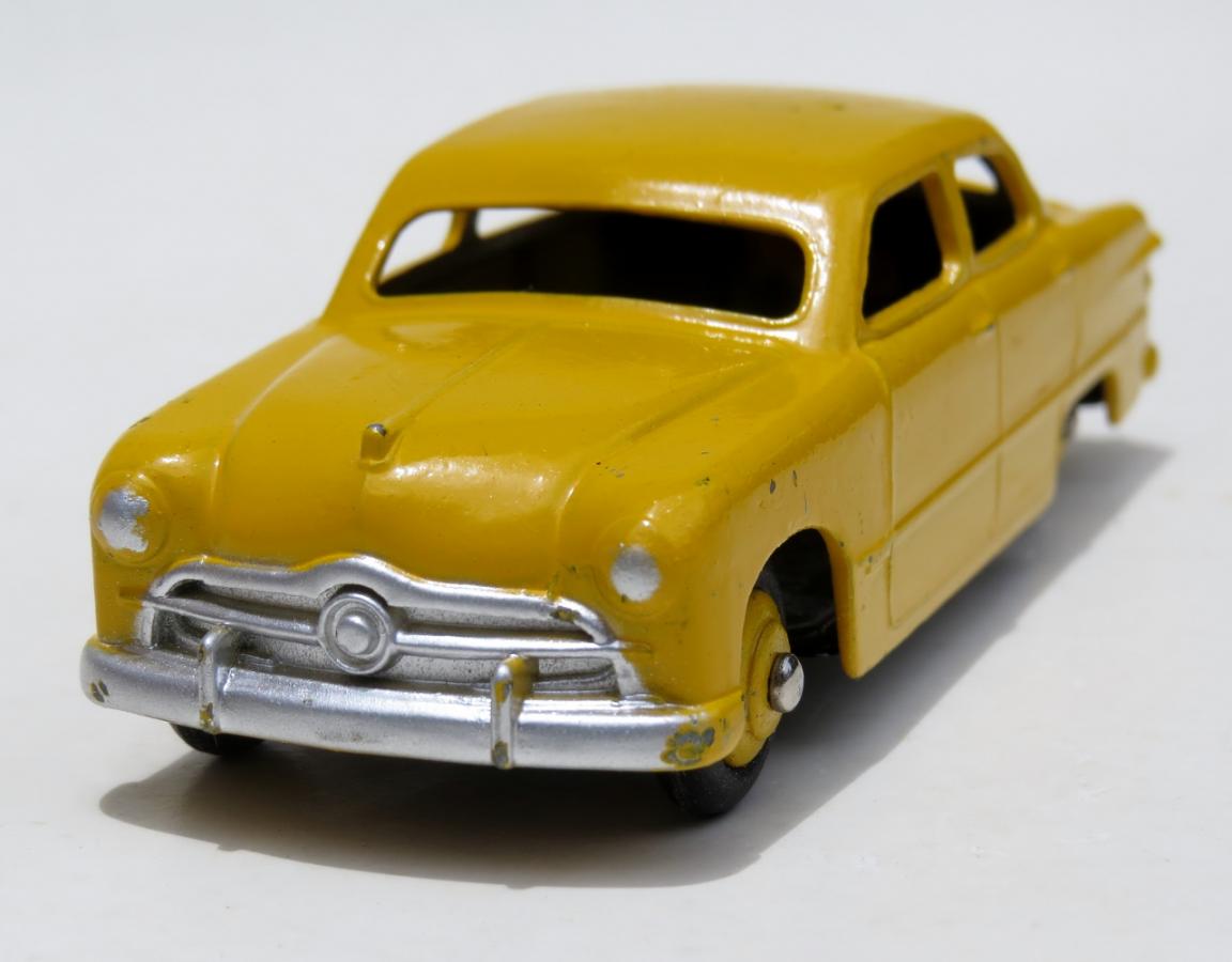 A recent arrival from Somerset in the United Kingdom (see New Arrivals) has been this delightful 139a Ford Fordor Sedan in yellow with yellow hubs displaying very little playwear, just the odd tiny chip here and there. The base plate is faultless and all four tyres are flexible and have not hardened. Also in the same parcel were four other early Dinky Toys that have been hardly played with, if at all, over the years. The Ford does not look any different to the number of other 139a that have passed through our front door, all having the usual very minor chips, except this one is perhaps unique within the collecting world of Dinky Toys!