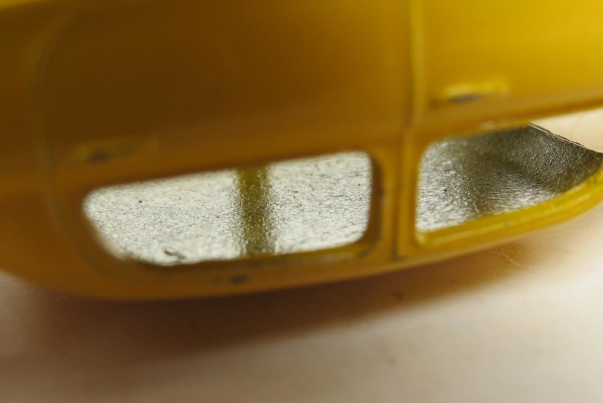 The all-yellow version has the extended front axle supports and nothing cast in the interior of the roof - see below.