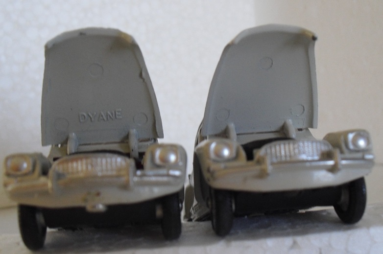 1) On the spanish model "Dyane" is engraved in the bonnet (as Jacques wrote in his encyclopedia) but also in the inside plastic roof.