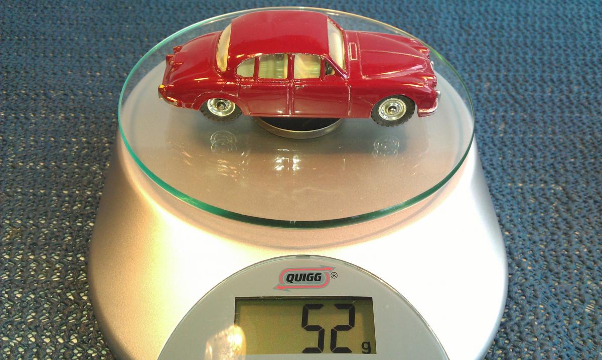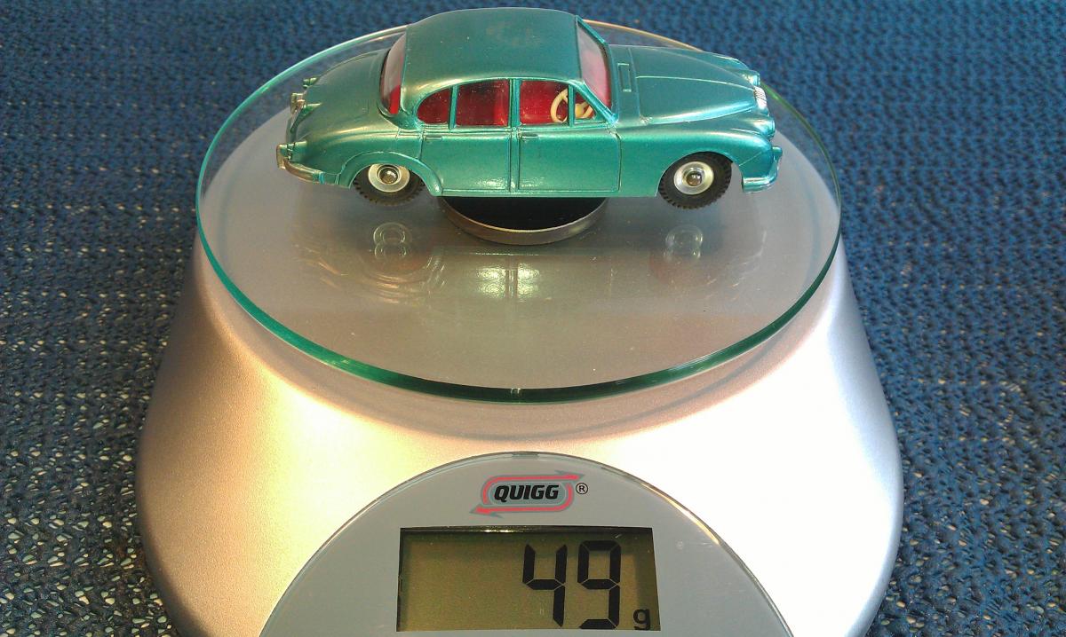The weight of the 146 Daimler with 49 grams is slightly lower than the 195 Jaguar with 52 gram. Because I thought that the weight of this 146 Daimler felt so light compared to the 157 Jaguar XK 120 coupé (1954-62) I weighed it and found 64 grams for the 157. 15 grams heavier than the 146 Daimler. When I started to turn the models around, I understood the cause of the difference in weight. The metal wall of the Jaguar XK 120 body is visibly thicker than the metal wall of the Daimler. I show that with a photo of the bottom of both models side by side. Does this have to do with a new method of production with a different metal alloy (Maybe resin?) and application of the spark erosion technique, as Jacques explained? It's my invented theory but I hope on reactions about this.