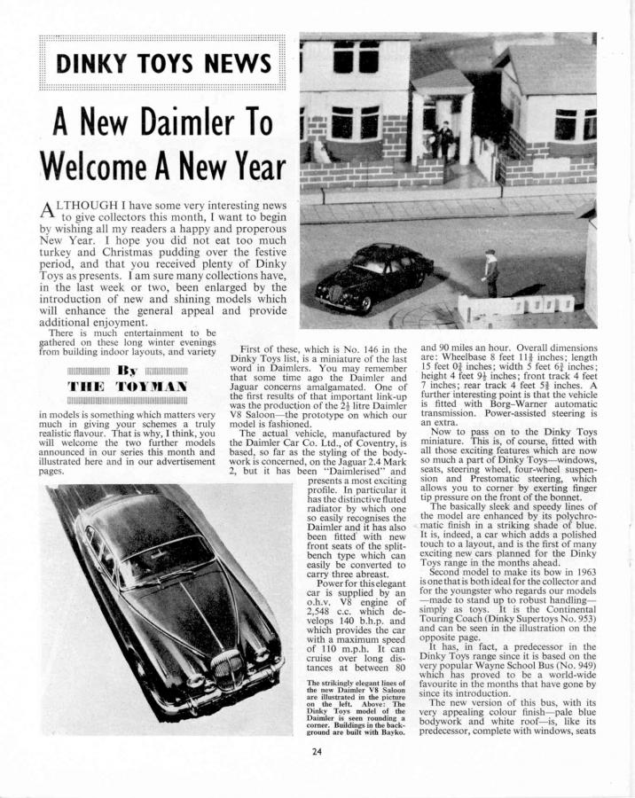 Meccano Magazine January 1963 introduction 146 Daimler 2,5 Litre V8 by the Toyman.